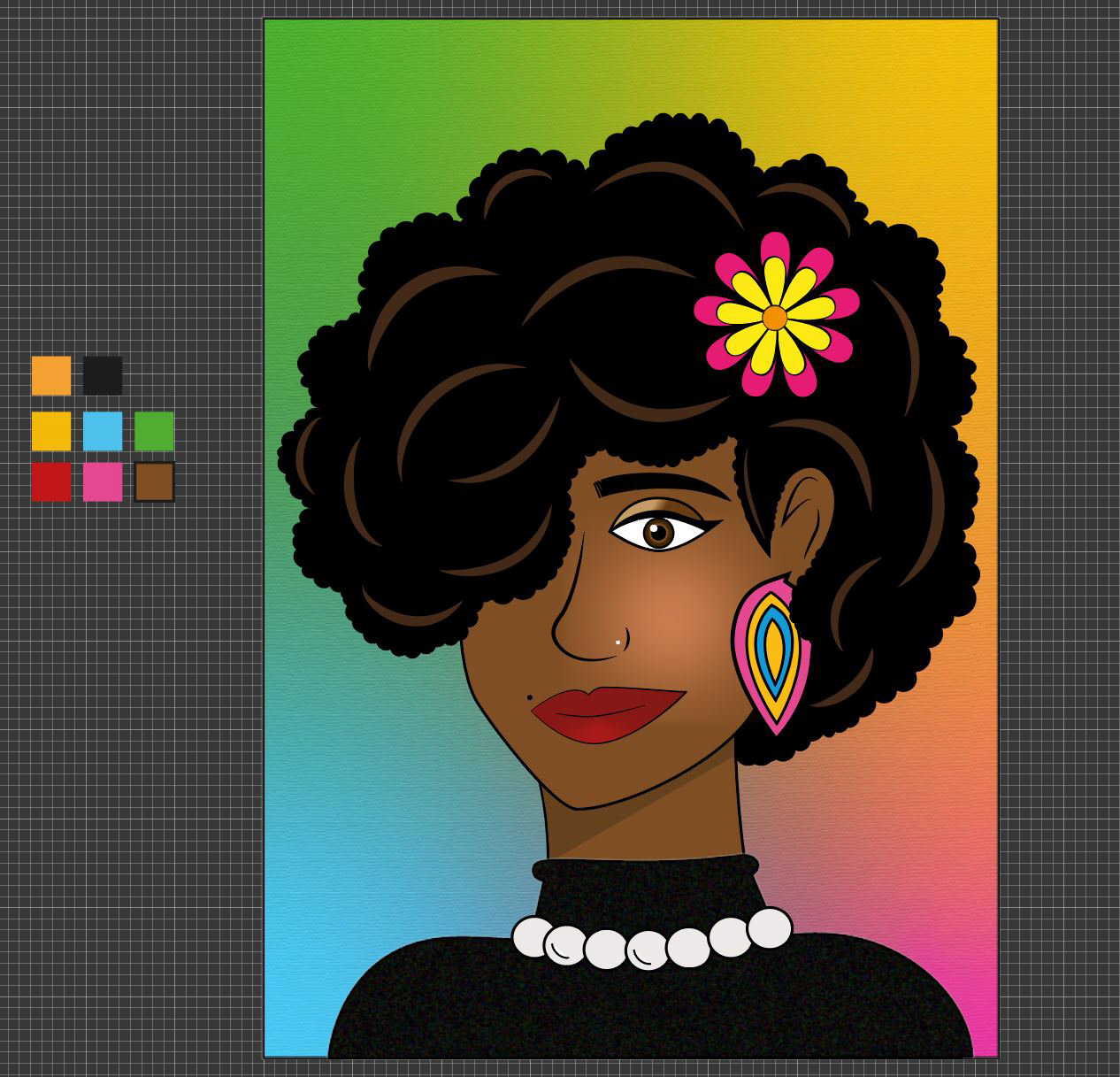 Projeto autoral realizado desde o esboço em papel em branco até a finalização com traços e contornos realçados, o mesmo foi vetorizado, levemente modificado e animado de forma realista, tendo como objetivo, homenagear e representar neste dia Internacional todas as Mulheres Negras Latino-Americanas e Caribenhas.